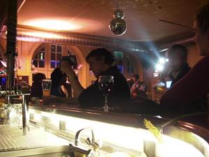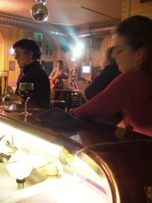 Soweit zur Lokalität, dem Personal merkt man deutlich an, dass hier normalerweise ein anderer Musikstil und damit auch Publikum gepflegt wird. Einzig Nina gibt sich Mühe, dem etwas anderen Publikum einen Standardservice zu bieten.Eintritt wird keiner verlangt und die Preise sind angenehm niedrig. Das muß wohl so sein, da es sich bei der an die Feuerwache angeschlossene bum.tschak.bar um eine von der Stadt gesponsertes Kulturstätte handelt. Ein kleines Mineralwasser (0,2) gibt es schon für € 1,50, eine kleine Cola, Fanta oder gemixt für € 1,80 und bei € 2,60 schenkt das Personal doppelt soviel ein. Das Pils (0,33) von der lokalen Brauerei "Eichbaum" geht für € 2,10, das Hefe- oder Kristallweizen für € 2,80 über die Theke. Dazwischen gibt es noch Schweppes für € 1,80, Orangina zu € 2,00 und bei 280 Eurocent auch einen erfrischenden Radler - im Norden auch Alsterwasser genannt. Apropos Bier, ich hatte bei meinem Besuch in der bum.tschak.bar Glück im Unglück: Da die Zapfanlage nicht richtig eingestellt war, dauerte ein Pils rekordverdächtige 10 Sekunden, dafür war aber nicht der Ansatz einer Schaumkrone "on top". Die Engländer unter den anwesenden Jazz-Freunden wird es gefreut haben.